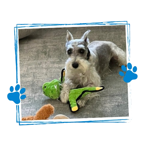 Behind the scenes, Patches is also the mascot of our mission: to support Schnauzer Love Rescue and help real pups find the love, safety, and forever homes they deserve.